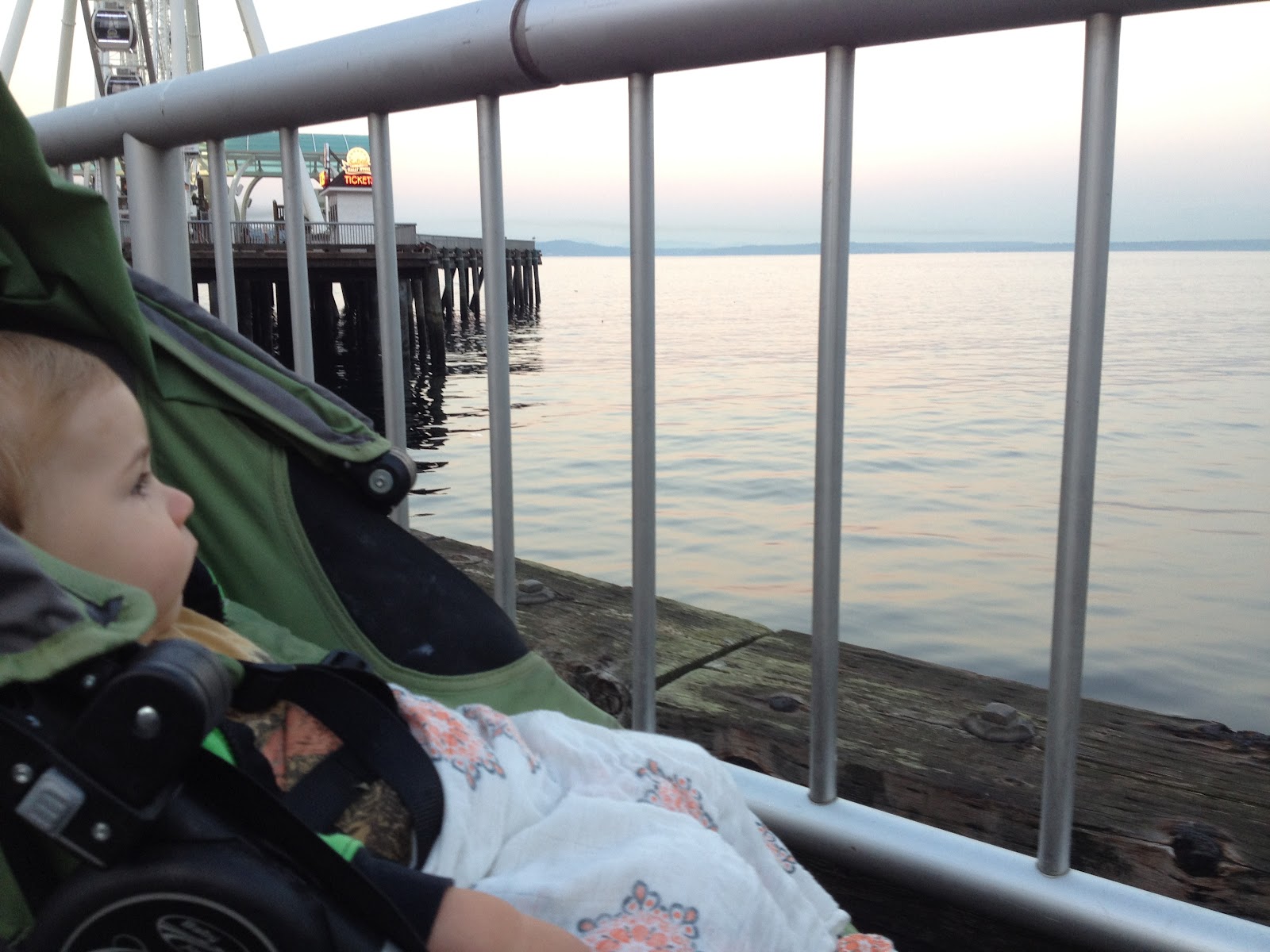 seattle is 3 hrs behind us at home, so the first few mornings, henry was wide awake and chipper at 3am, but he eventually adjusted. friday, robb shopped and beached with friends and family while i conferenced. and for dinner we all ate a sort of sushi buffet where the food travels past you on a conveyor belt and you just pick and pay for what you want. awesome. so good. want one in my house.